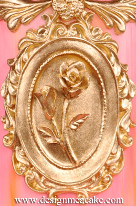 Since the class is a 3 hour class, we won’t be able to do a 4 tier cake, so we will have to make a one tier cake that includes the main parts of the design. Because of the limited time, this means that we will only be able to teach you how to paint the cake, create the oval frame, do a couple mini roses along with the leaves. This way, I can demo the rest of the details in the cake for the class so that everyone can see the outcome on how to create this gorgeous creation.