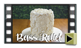 Bas relief is an old technique that is being used a lot these days. Everything old is new again. You can do this technique all over the cake or you can do areas of it. It really depends on what you are trying to achieve. No matter what, it’s a busy look and I can call it even messy when it’s used all over the cake. You can use any mold to do this technique and you can mix them or just be repetitive with the same one.