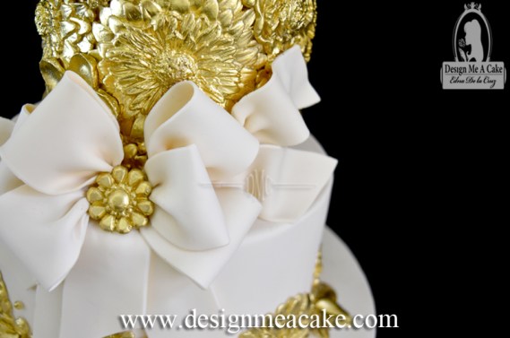 I used Luck’s Classic Gold Shimmer with my Airbrush to color the cake. I love to airbrush a cake but one thing you need to know is that airbrushing will make any small crack look more like a crater. Especially if you try to airbrushed too fast and make the fondant too wet.When it