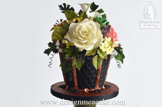 I made a tutorial on how I did the base of this cake. I wanted this base to look like a modern style basket weave, so I decided to use this beautiful mold from Marvelous Molds for my base. The tutorial shows how to use basic molds in unusual cake shapes. I basically divided my cake into panels and added other details to complete and clean the final design. I love the combination of the black and Copper Petal Dust for this fall theme topper.